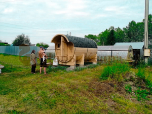 Данная опция позволяет доставить баню в труднодоступные места, куда выгрузка в собранном виде невозможна. Комплект для сборки обязательно полностью собирается на производстве, во избежание любых, даже малейших несостыковок, затем разбирается и нумеруется каждая деталь. Процесс сборки бани занимает примерно 1-2 дня, силами 2-3 человек (в зависимости от размера бани).
