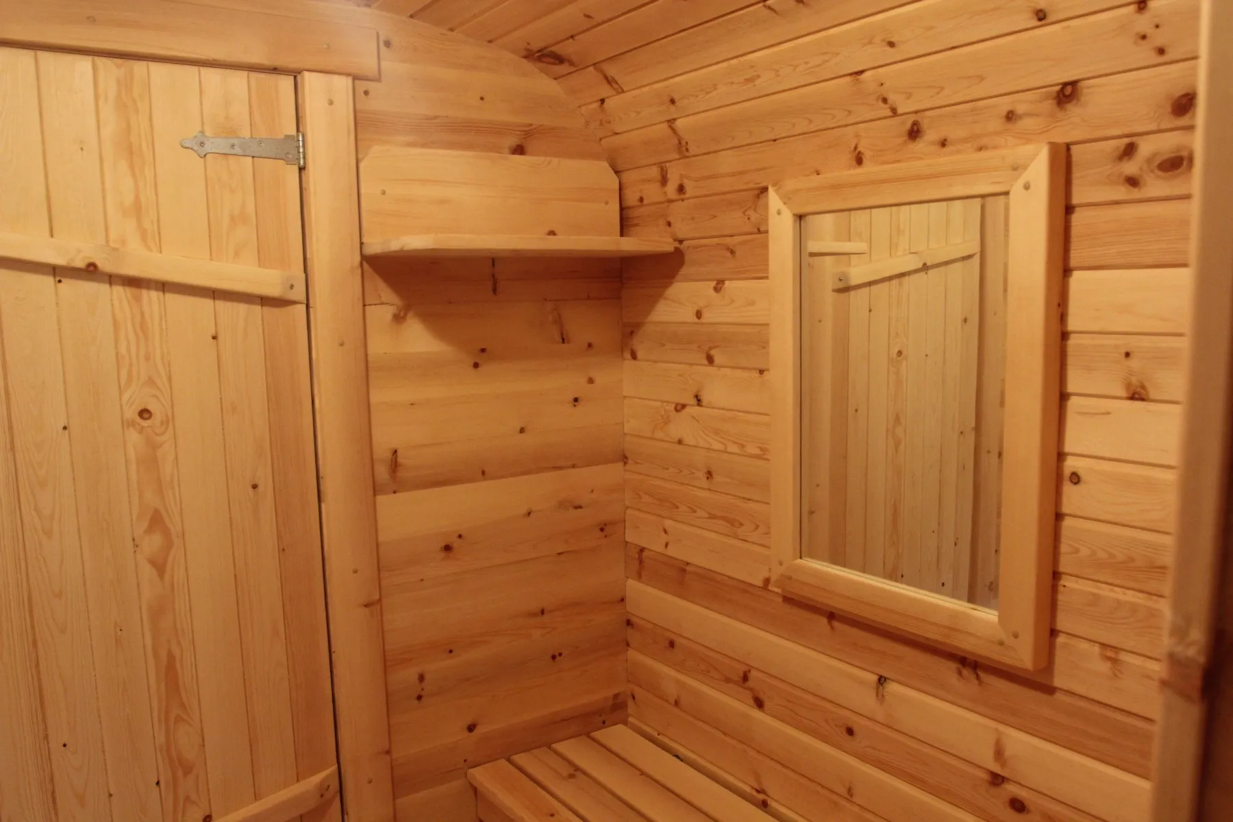 Создаст приятную атмосферу с приглушённым светом, а также визуально расширит пространство парной.