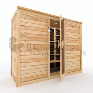 Это специально оборудованная кедровая кабина для прогрева тела человека сухим теплом. Воздух в таких парных не нагревается. Инфракрасные лучи воздействуют на тело, равномерно прогревая мышцы, суставы и органы. Карбоновые излучатели, встроенные в стены кабины, обладают мягким прогревом, что полностью исключает возможность ожога. Работает кабина за счет электричества. Инфракрасная сауна с карбоновыми излучателями подойдет как для домашнего использования, так и для коммерции.