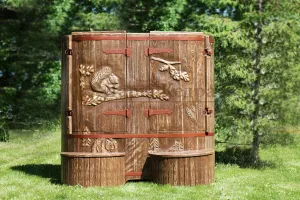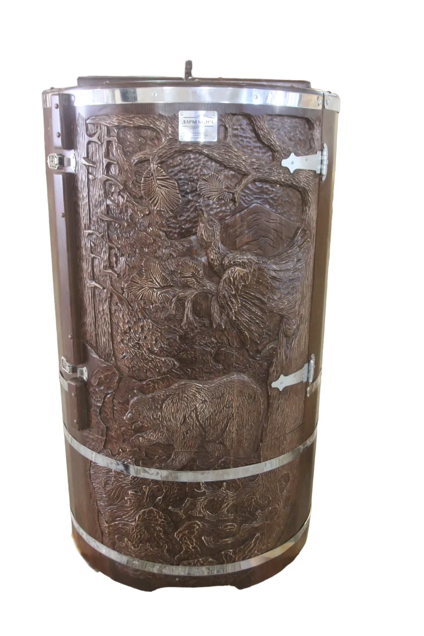 Резьба на дверце кедровой бочки (габаритные фитобочки)