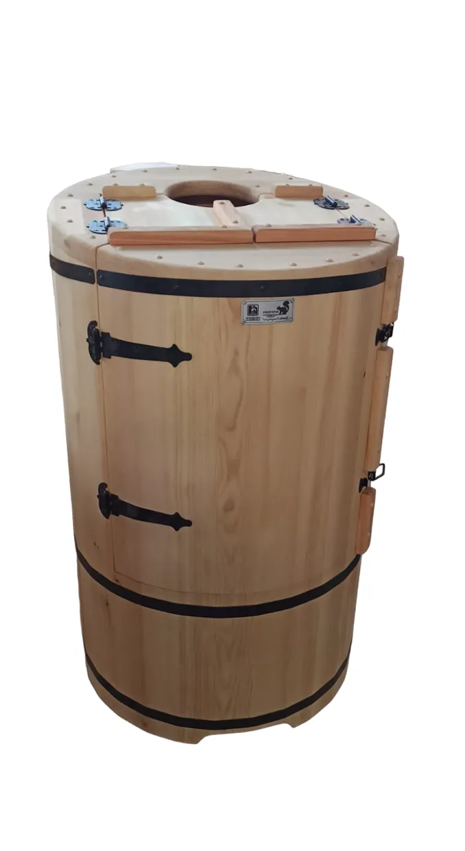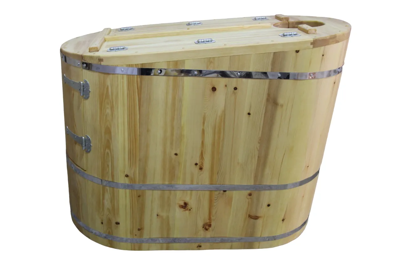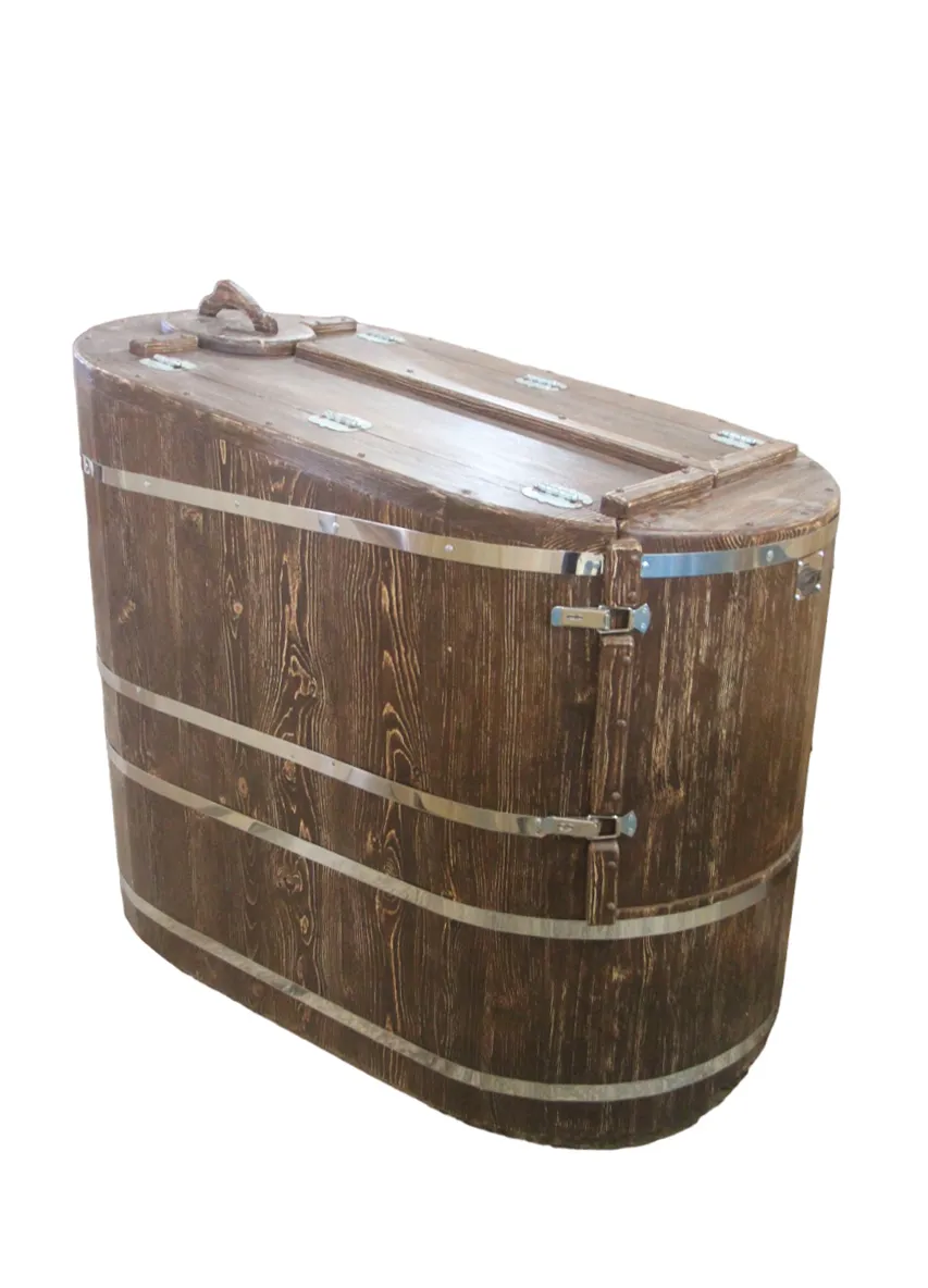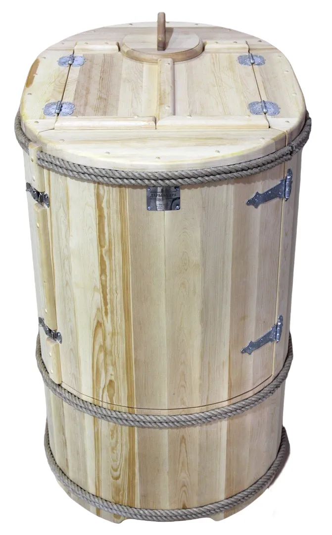 Круглая фитобочка представляет собой мини парную, которую можно использовать не только в спа-салонах, но и дома. Бочка изготовлена из древесины кедра без отбора по сучкам, поэтому такая модель считается более доступной. Фитобочка оборудована откидными створками, дверцей и отверстием для головы. Во время парения человек сидит внутри кедровой бочки, а голова находится снаружи. Благодаря этому исключается возможность перегрева. Подлокотники из кедра, встроенные ручки на створках и двери делают эксплуатацию более удобной.