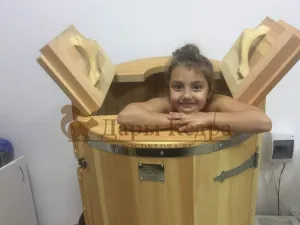 Круглая фитобочка из кедра - это мини парная, которую можно использовать не только в спа-салонах, но и дома. Такая модель наиболее компактна и мобильна. Толщина стенок составляет 25 мм. Фитобочка оборудована откидными створками, дверцей и отверстием для головы. Во время парения человек сидит внутри кедровой бочки, а голова находится снаружи. Благодаря этому исключается возможность перегрева. Подлокотники из кедра, встроенные ручки на створках и двери делают эксплуатацию более удобной.