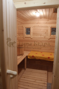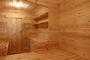 Козырек из кедра - это защита входа в баню и всего фасада от лишней влаги, что, конечно, лучшим образом скажется на красоте и долговечности дерева.