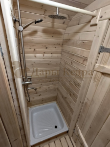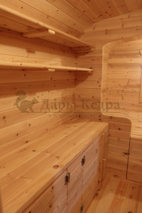 При обустройстве кемпинг-домов и габаритных бань (эксплуатация в качестве летнего домика) обратите внимание на шкаф, он точно вам пригодится для размещения вещей. Внутри - полки и штанга для аккуратного размещения одежды. Высота - 1,8 м, ширина - 0,9 м, глубина - 0,45 м.