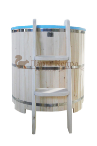 Особенность этой модели заключается в сборке купели по технологии лунный-паз. Паз (углубление) одной доски прочно соединяется с выемкой следующей. Такая сборка осуществляется без клея и гвоздей. Готовая конструкция прочно фиксируется нержавеющими обручами. Пластиковая вставка придает изделию красивый внешний вид, увеличивает срок службы и облегчает уход за купелью. Для удобства пользования купель оснащена лавочками, приставной и внутренней лестницей из кедра. Подходит для комнатного и уличного использования.