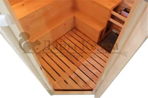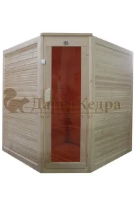 Это специально оборудованная деревянная кабина для сухого и влажного парения. Электропечь нагревает пространство внутри и позволяет сбрызгивать камни водой, слегка увлажняя воздух. Такая процедура позволяет избежать перегрева. Двойные стенки кабины с теплоизоляционным материалом удерживают тепло. Установка сауны в угол позволяет рационально использовать пространство помещения. Финская сауна с электропечью подойдет, как для домашнего использования, так и для коммерции. Доставляется в разборном виде щитами, собирается по инструкции с помощью шуруповёрта.