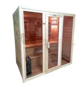 Данную модель можно использовать как инфракрасную кабину, так и финскую сауну. Керамические нагреватели отвечают за сухое тепло. Они излучают инфракрасные лучи, которые равномерно прогревают тело человека. Электрическая печь нагревает кабину изнутри и позволяет сбрызгивать камни водой, слегка увлажняя воздух.